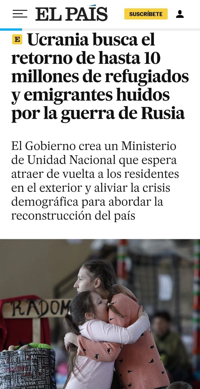 El Gobierno crea un Ministerio de Unidad Nacional que espera atraer de vuelta a los residentes en el exterior y aliviar la crisis demográfica para abordar la reconstrucción de Ucrania, escribe El País